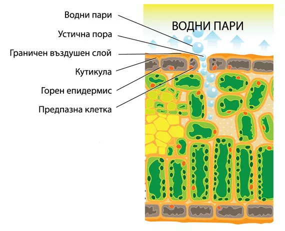 Растенията могат да регулират процеса на транспирация и да се охлаждат посредством специализирани органи, наречени устици. Устиците са специализирани клетки в листата, които могат да се отварят и затварят, ограничавайки количеството отделени водни пари. При по-висока температура устиците се отварят и отделят повече пари. Трудно е да се измерят отворите на устиците и затова използваме ДН като мерна единица. Когато устиците са отворени по-широко, повече газове могат да влизат и излизат от листата.